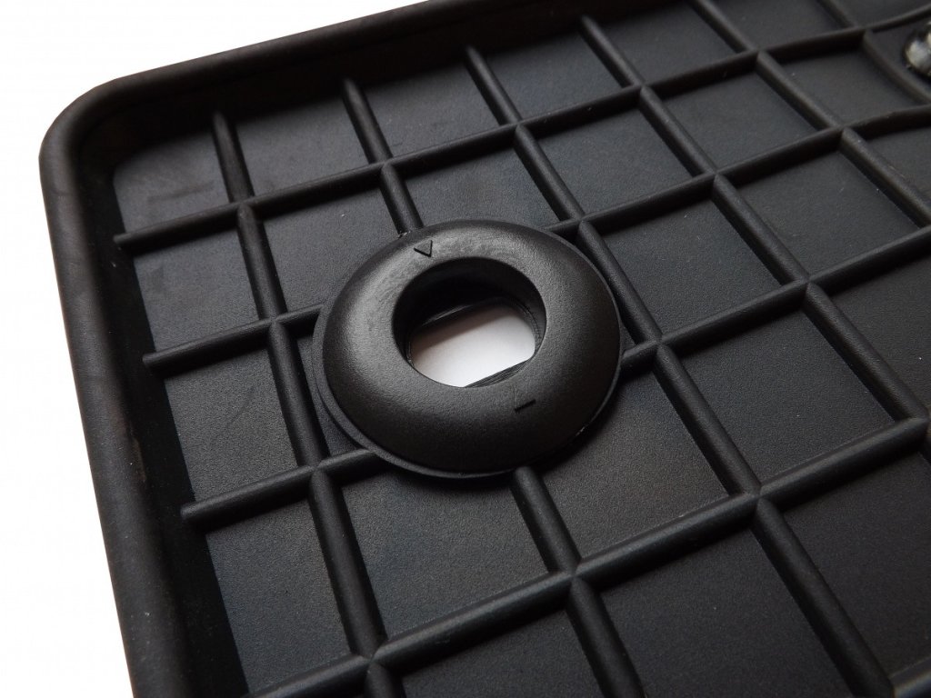Wenn das Fahrzeug ab Werk mit Stiften im Boden für die Verwendung von Originalbefestigungen ausgestattet ist, dann sind die Befestigungen Teil der vorderen Fußmatten.