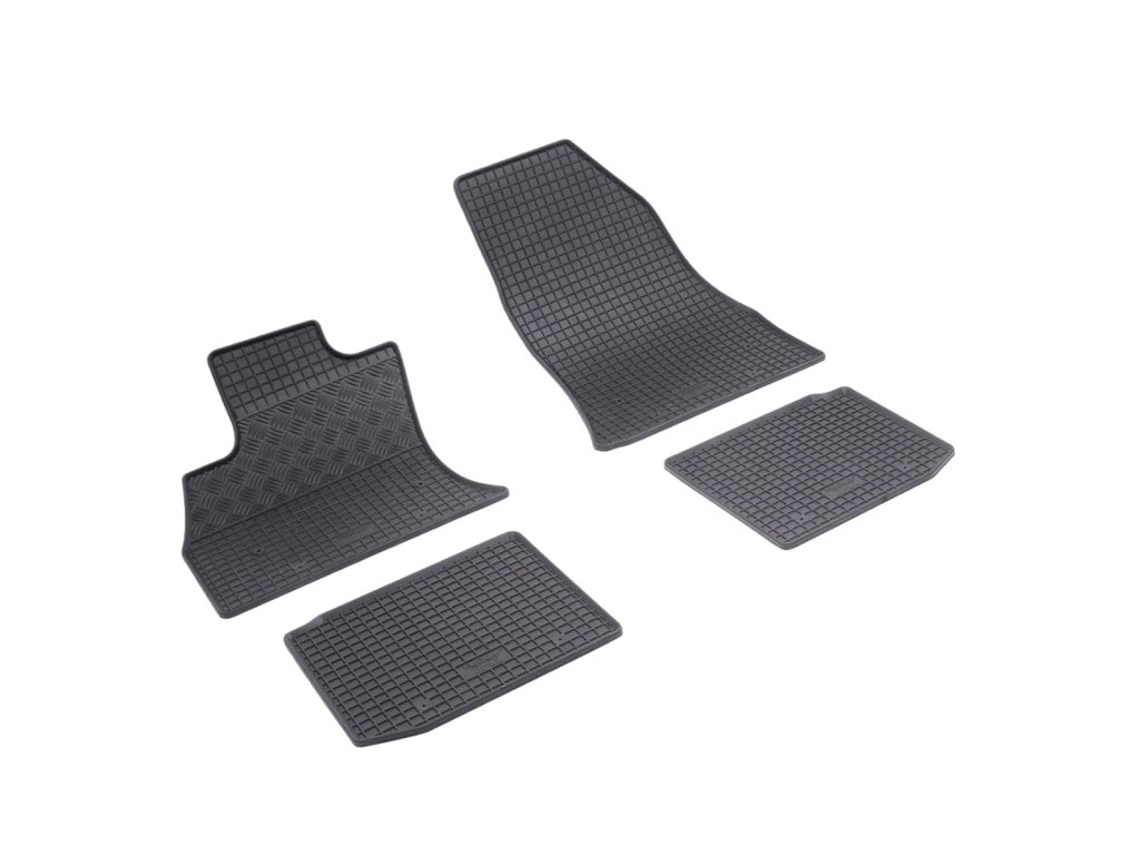 Gummifußmatten mit traditionellem Karomuster. Der Rand ist ca. 1 cm hoch.Hochwertige Gummifußmatten für das Fahrzeug Fiat 500L. Die Fußmatten haben ein traditionelles (kariertes) Design, wodurch kein Wasser oder geschmolzener Schnee über die Matten fließt. Der Rand der Fußmatten ist ungefähr 1 cm hoch.