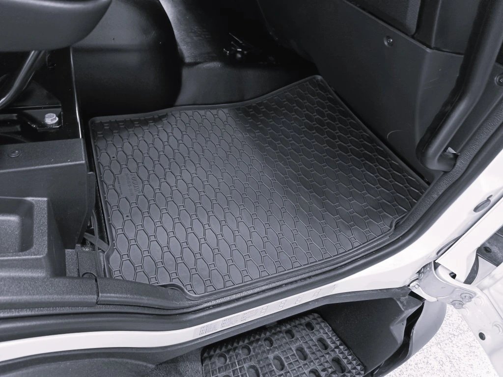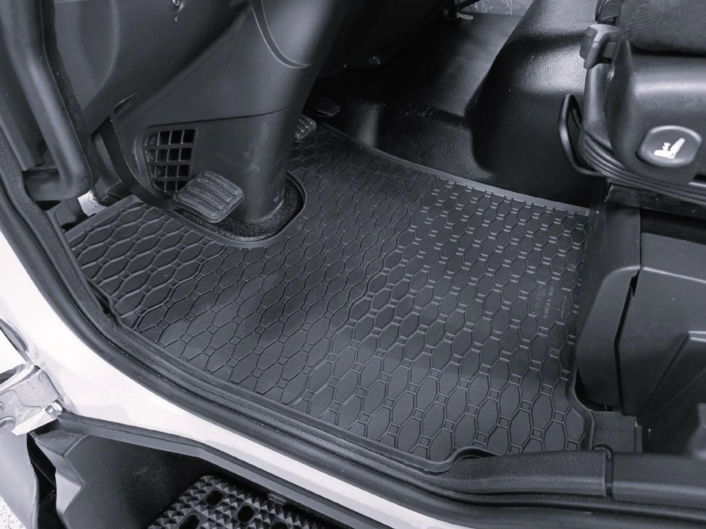 Gummifußmatten mit traditionellem Karomuster. Der Rand ist ca. 1 cm hoch.Hochwertige Gummifußmatten für den LKW Iveco Eurocargo. Die Fußmatten haben ein traditionelles (kariertes) Design, wodurch kein Wasser oder geschmolzener Schnee über die Matten fließt. Der Rand der Fußmatten ist ungefähr 1 cm hoch.