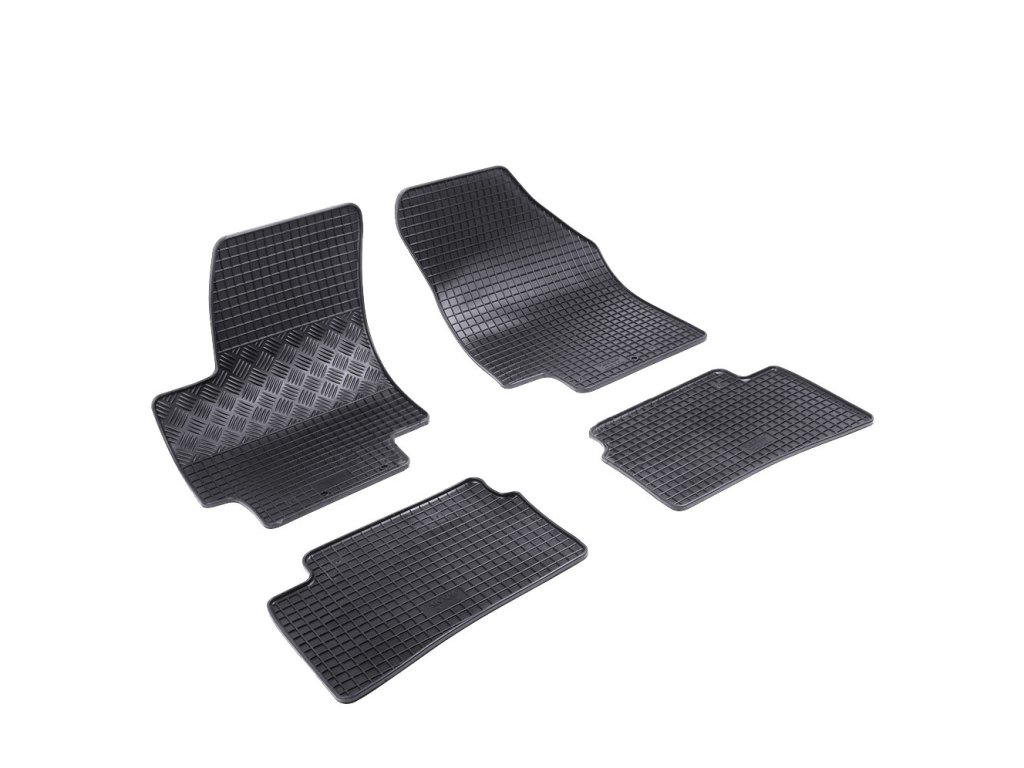 Gummifußmatten mit traditionellem Karomuster. Der Rand ist ca. 1 cm hoch.Hochwertige Gummifußmatten für das Fahrzeug Kia Rio. Die Fußmatten haben ein traditionelles (kariertes) Design, wodurch kein Wasser oder geschmolzener Schnee über die Matten fließt. Der Rand der Fußmatten ist ungefähr 1 cm hoch.