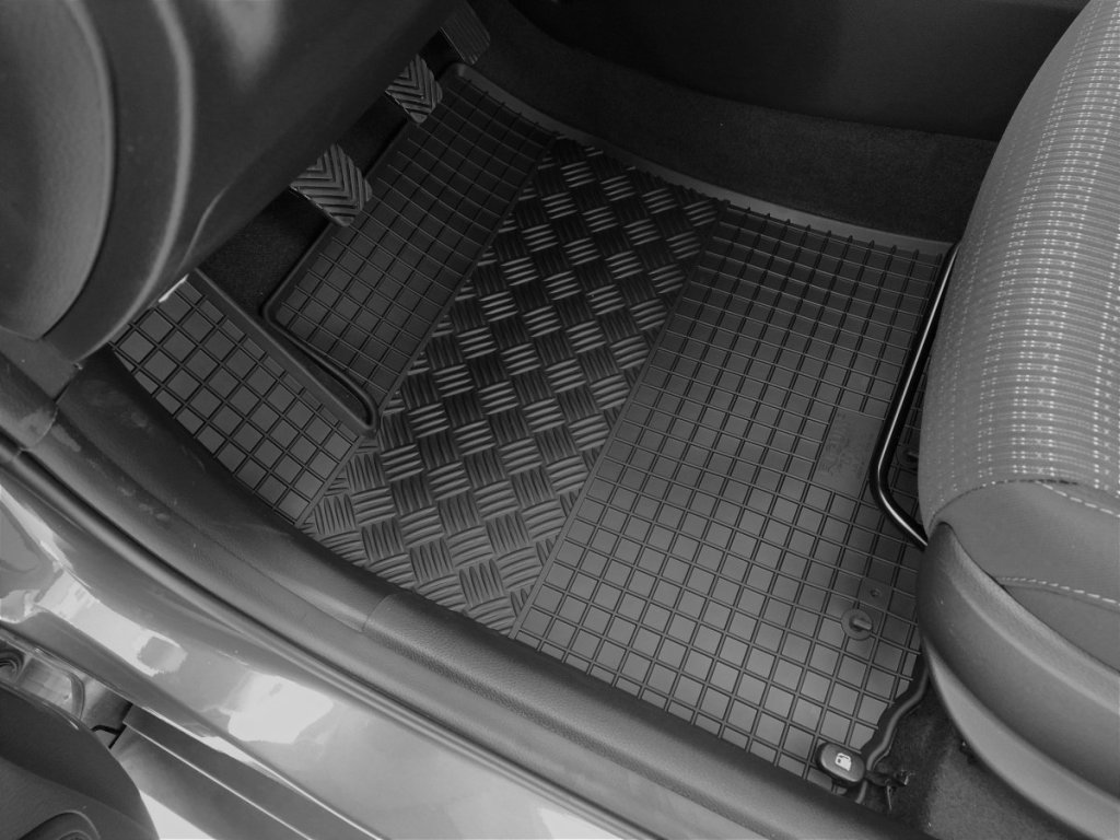 Hochwertige Gummifußmatten für den PKW Kia Rio und Kia Stonic. Die Fußmatten haben ein traditionelles (kariertes) Design, wodurch kein Wasser oder geschmolzener Schnee über die Matten fließt. Der Rand der Fußmatten ist ungefähr 1 cm hoch.