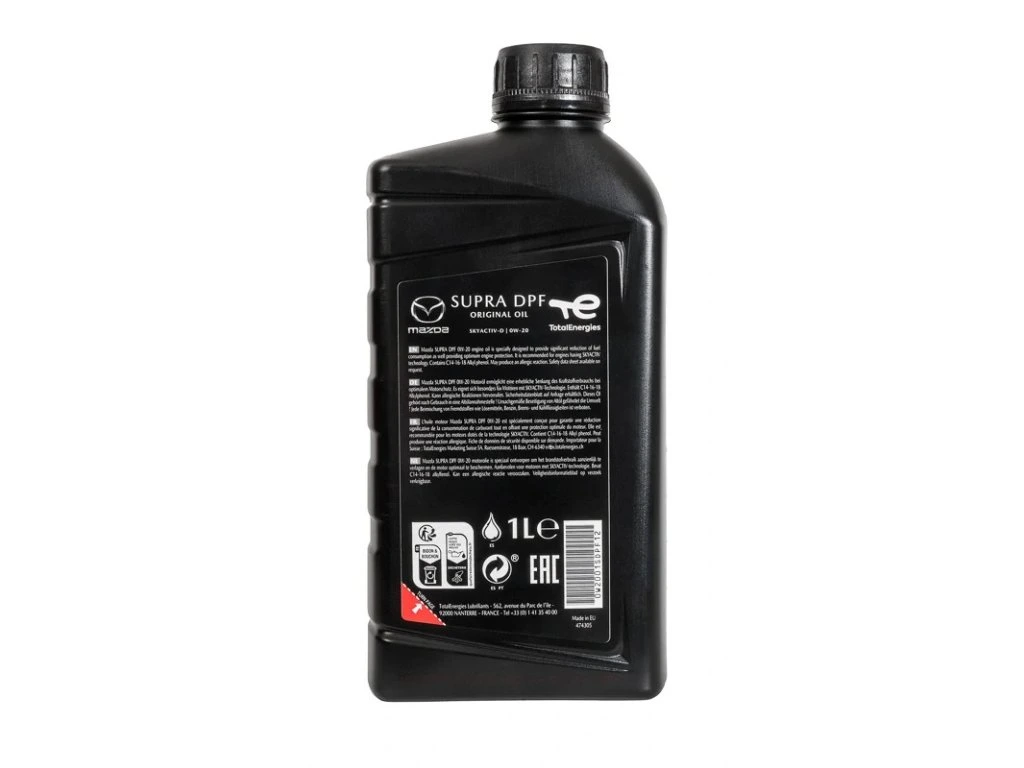 Mazda Original Supra DPF 0W-20 is a premium generation engine oil, specifically designed for the revolutionary e-SKYACTIV D – Mazda's most advanced diesel engines. The oil has been tested and approved directly by Mazda Motor Corporation and is primarily intended for Mazda models with 3.3l diesel engine equipped with a particulate filter (DPF).