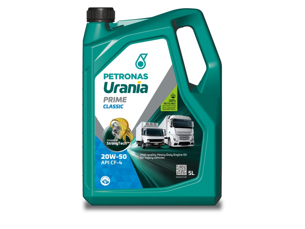 PETRONAS Urania Prime Classic 20W-50 is a top-tier engine oil for heavy-duty diesel engines, developed with advanced StrongTech™ technology. This proven formulation creates an exceptionally durable lubricating film that protects the engine, maintains its performance, and ensures your trucks stay on the road longer. The higher 20W-50 viscosity grade provides optimal lubrication for older engines with larger tolerances and for operation in warmer climatic conditions. The result is a lower total cost of ownership and maximum reliability for your fleet.