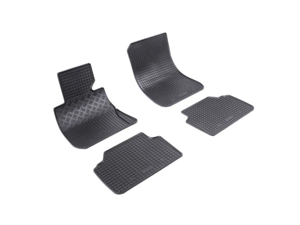 Rubber car mats with traditional square design. The edge is about 1 cm high.Quality rubber car mats for the BMW 3 (E90, E91). The car mats have a traditional (chequered) design, which prevents water or melting snow from spilling over the mats. The edge of the car mats is approximately 1 cm high.