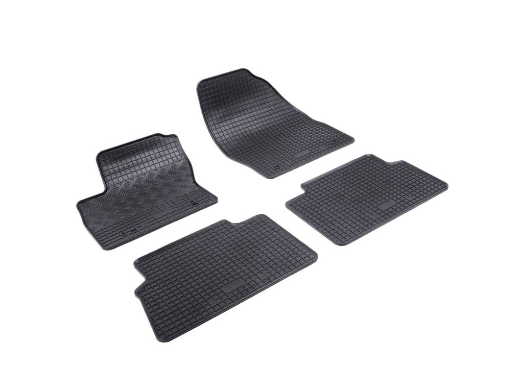 Rubber car mats with traditional square design. The edge is about 1 cm high.Quality rubber car mats for the Ford Kuga, manufactured from 2008 to 2013. The car mats have a traditional (chequered) design, which prevents water or melting snow from spilling over the mats. The edge of the car mats is approximately 1 cm high.