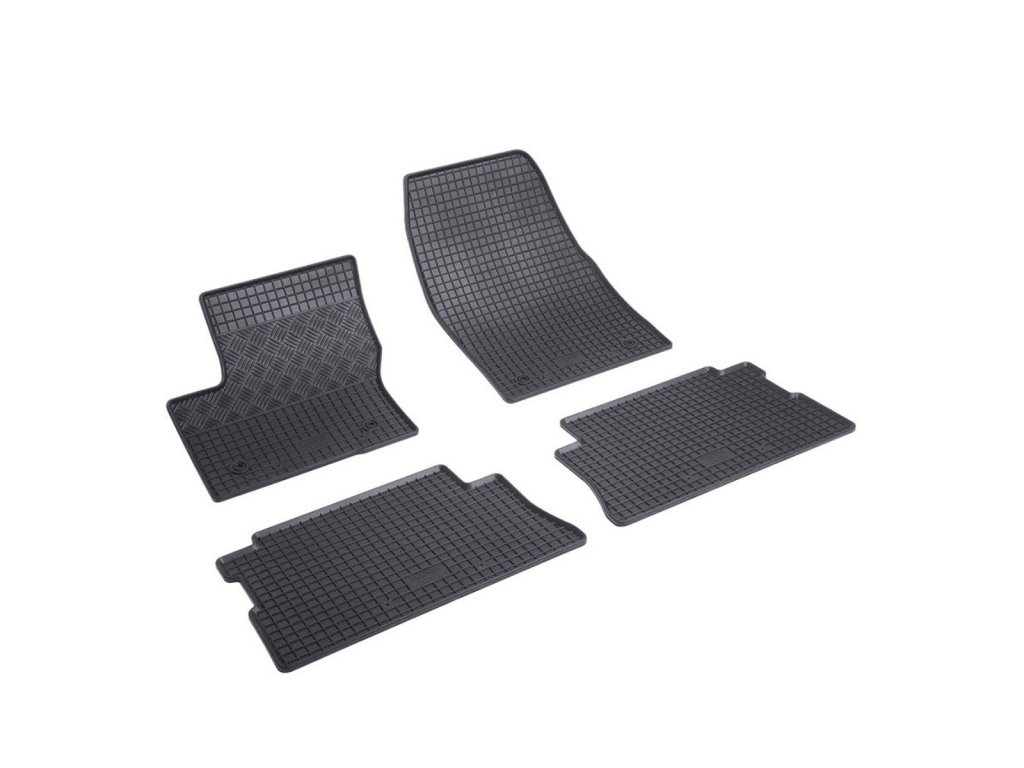 Rubber car mats with traditional square design. The edge is about 1 cm high.Quality rubber car mats for the Ford Kuga. The car mats have a traditional (chequered) design, which prevents water or melting snow from spilling over the mats. The edge of the car mats is approximately 1 cm high.