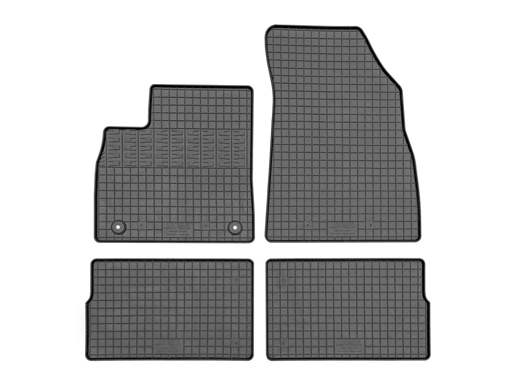 Car mats with a checkered design and a 1 cm border.Quality rubber car mats for the Jaecoo 5 , which has been produced since 2024. This is a set for the whole car. The car mats have a traditional (chequered) design, which prevents water or melting snow from spilling over the mats. The edge of the car mats is approximately 1 cm high.