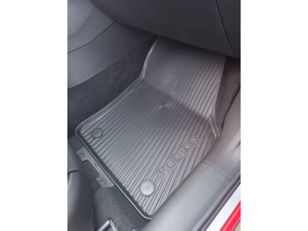 Original Skoda rubber car mats supplied as original equipment.Original rubber floor mats for the Škoda Kodiaq first generation, which the car is equipped with from the factory or are available from official distributors of accessories for Škoda cars.