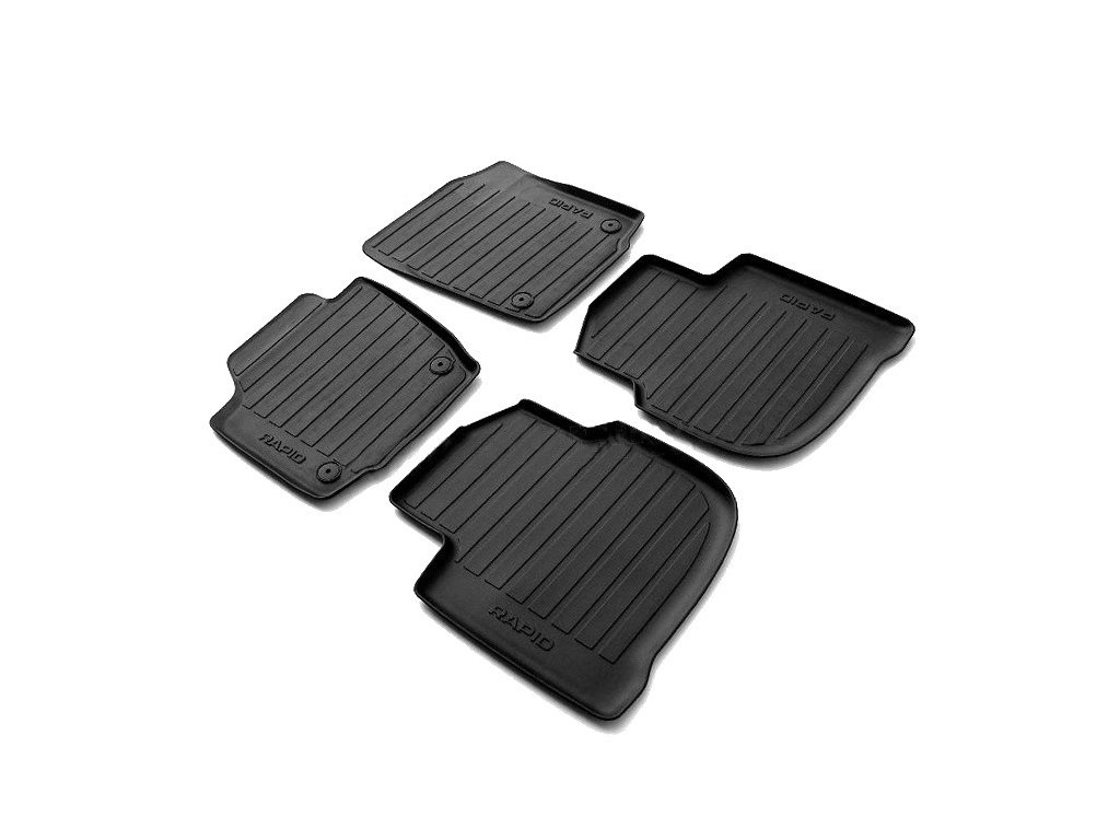 Original Skoda rubber car mats supplied as original equipment.Original rubber floor mats for the Škoda Rapid, with which the car is equipped from the factory or are available from official distributors of accessories for Škoda cars.