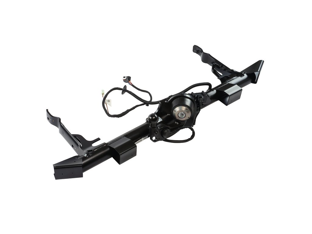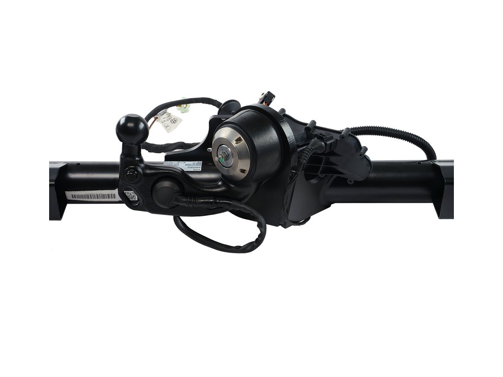 It can be folded under the bumper by means of an electrical release. Including special wiring and 13-pin plug.