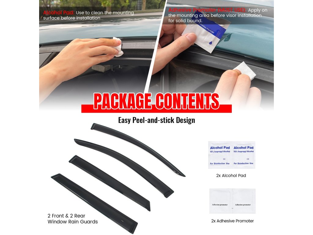 - 4 pcs window deflectors (front + rear)