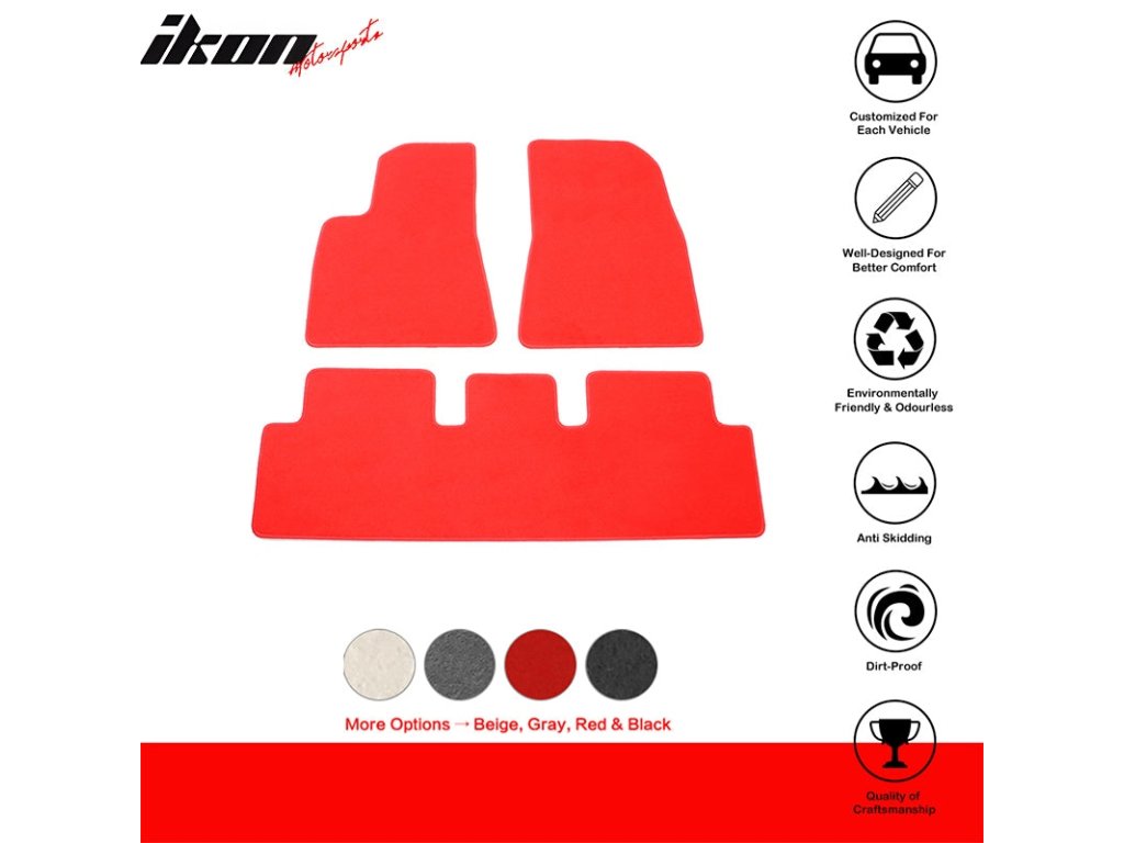 Tesla Model 3 2017-2023 Textile Floor Mats 3-Piece Set Red