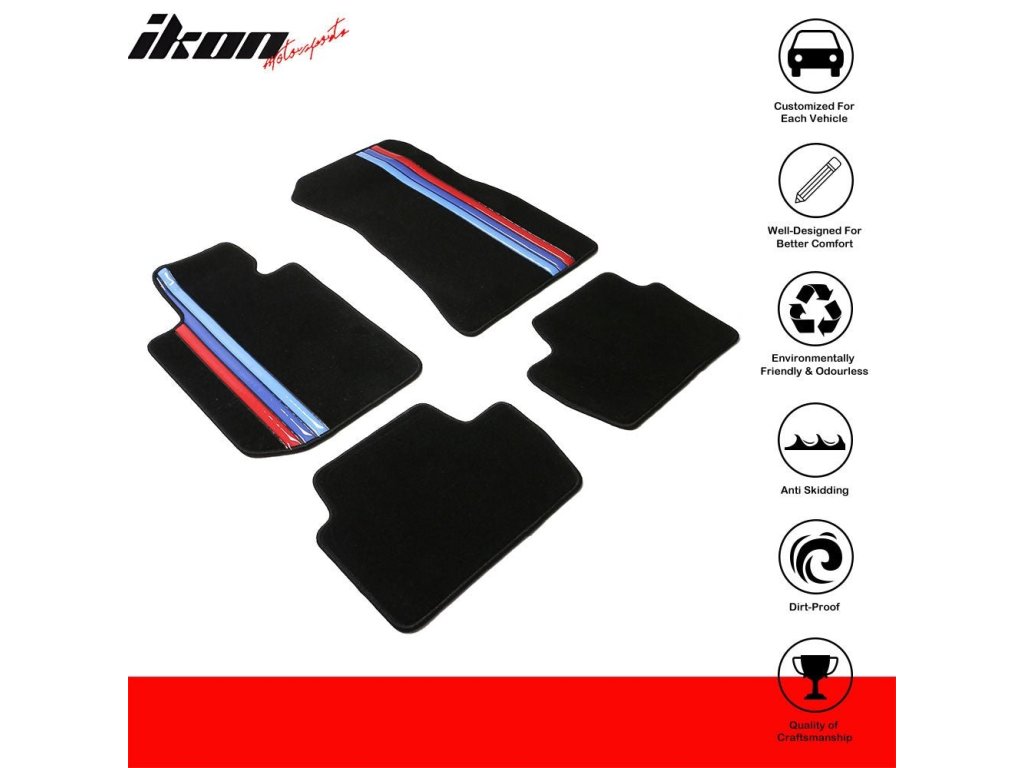 BMW 2 Series 2022-2024 Textil szőnyegek 4 részes készlet nylon fekete három csíkkal