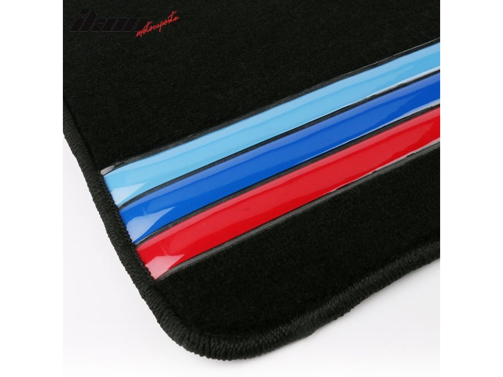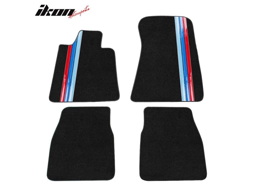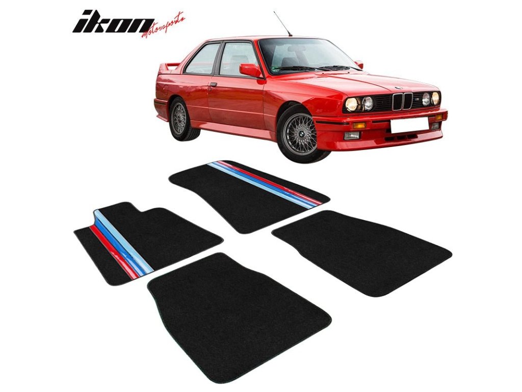 BMW 3 Series Coupe 1984-1991 Textil szőnyegek 4 részes készlet fekete három csíkkal, nylon