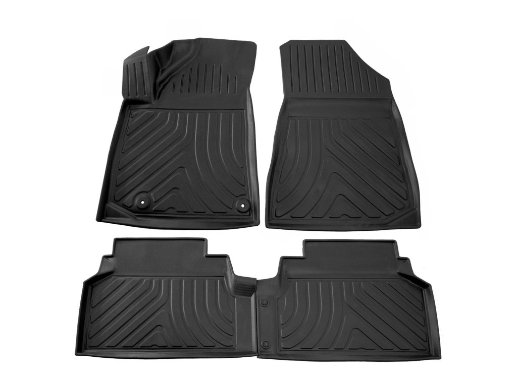 Gumowe dywaniki samochodowe o oryginalnym wzornictwie imitującym teksturę skóry. Dodatkowo posiadają podniesiony rant o wysokości 3 cm i osłonę tunelu środkowego.Gumowe dywaniki samochodowe Stingray do Kia e-Niro mają podwyższoną krawędź (3 cm) na całym obwodzie i skutecznie zapobiegają przedostawaniu się brudu do wnętrza samochodu.