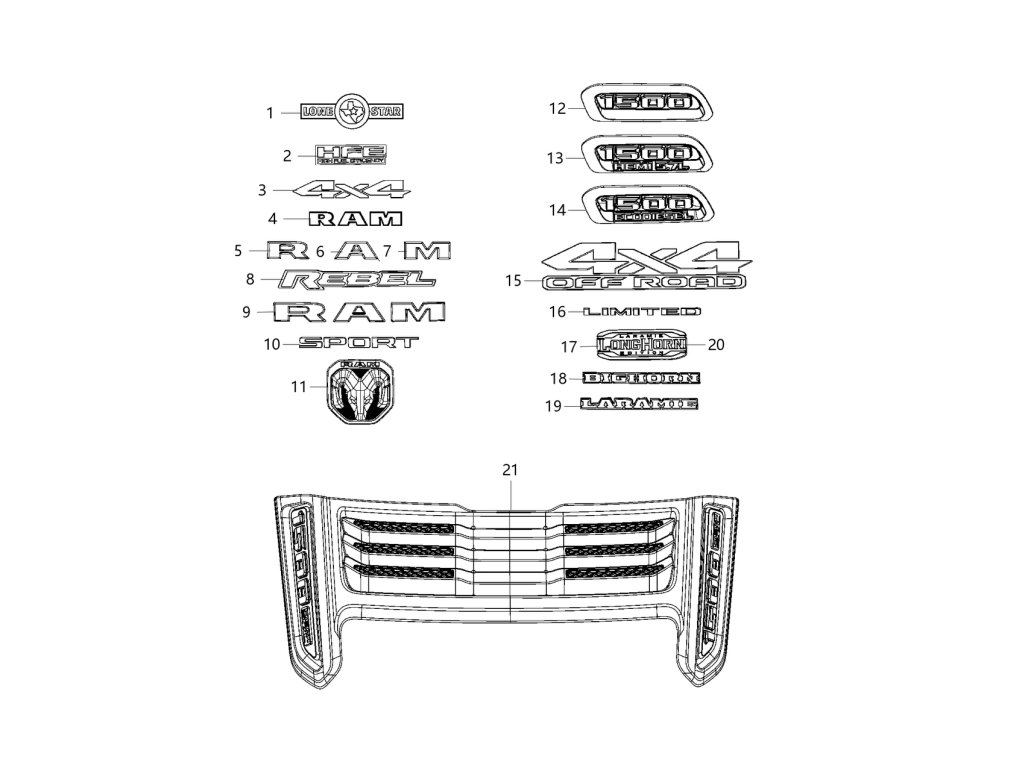 Dodge RAM 1500 DT Napis na pokrywie 1500 HEMI Kaptur
