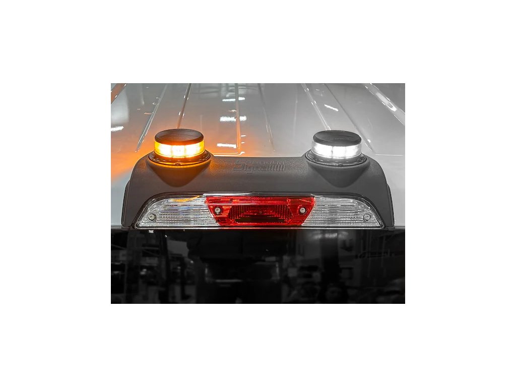 - Dostępny jest zestaw z podwójną lampą ostrzegawczą z oświetleniem 360 stopni z przezroczystymi kopułami oraz białymi i bursztynowymi diodami LED.