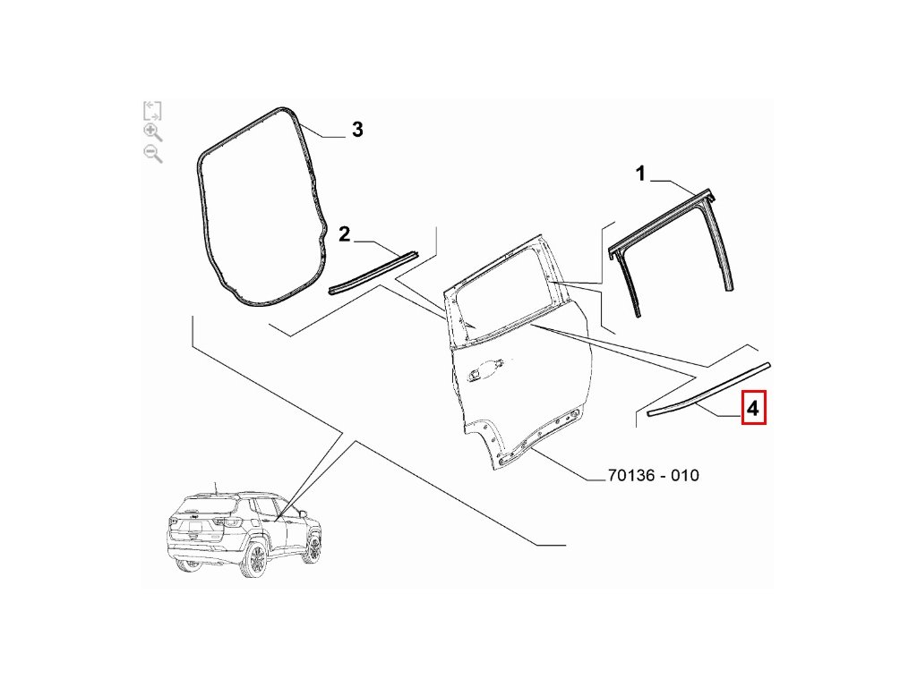 Jeep Compass MV Zewnętrzna uszczelka hermetyczna tylnych prawych drzwi 68498124AA