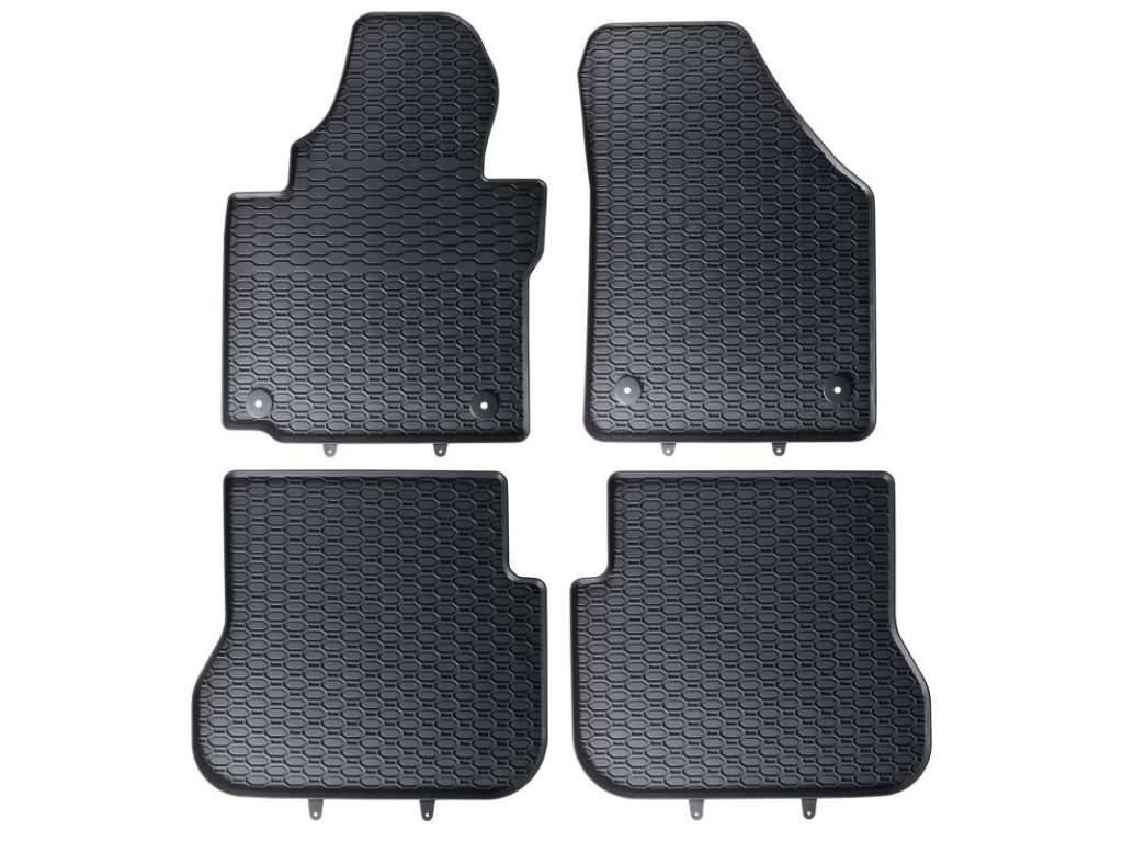 Robustné koberce do auta s voštinovým vzorom. Okraj koberca je vysoký 1 cm.Robustné gumové autokoberce pre vozidlo VW Caddy. Majú dezén v tvare plástov, vďaka ktorému nedochádza k prelievaniu vody alebo topiaceho sa snehu po kobercoch. Okraj autokobercov je približne 1 cm vysoký.