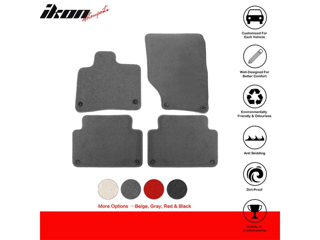 - Protiskluzový design: Zabudované protiskluzové prvky zajistí, že koberečky zůstanou na svém místě, ať už jedete klidnou jízdou nebo ostrými zatáčkami.