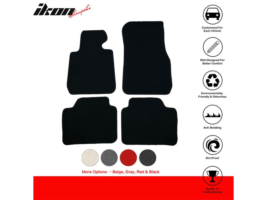 1. Dokonalý střih: Navrženo speciálně pro BMW F30 3 Series Sedan, takže se nemusíte bát, že by koberce neseděly. 2. Trvanlivost a kvalita: Naše koberce jsou vyrobeny tak, aby vydržely roky používání, a přitom vypadaly stále jako nové. 3. Snadná údržba: Jednoduše je můžete vysát nebo otřít vlhkým hadříkem a koberec bude opět zářit čistotou. 4. Stylový vzhled: Elegantní černá barva dodá vašemu vozu nádech luxusu a sofistikovanosti.