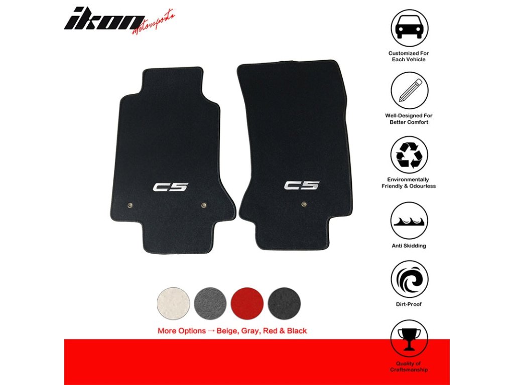Perfektní přizpůsobení: Přesně na míru pro modely Corvette C5, tyto koberečky padnou jako ulité. Instalace je snadná a rychlá, bez nutnosti úprav. Anatomický tvar zajišťuje, že koberečky zůstávají pevně na svém místě a nekloužou pod nohama, což zvyšuje bezpečnost během jízdy.