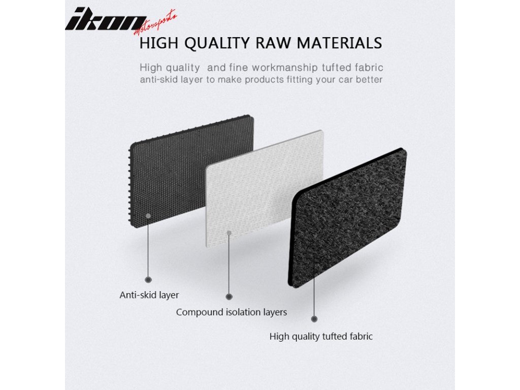4. Protiskluzová spodní vrstva: Bezpečnost na prvním místě. Naše koberce mají protiskluzovou spodní vrstvu, která zajišťuje, že koberce zůstanou na svém místě i při prudkém brzdění.