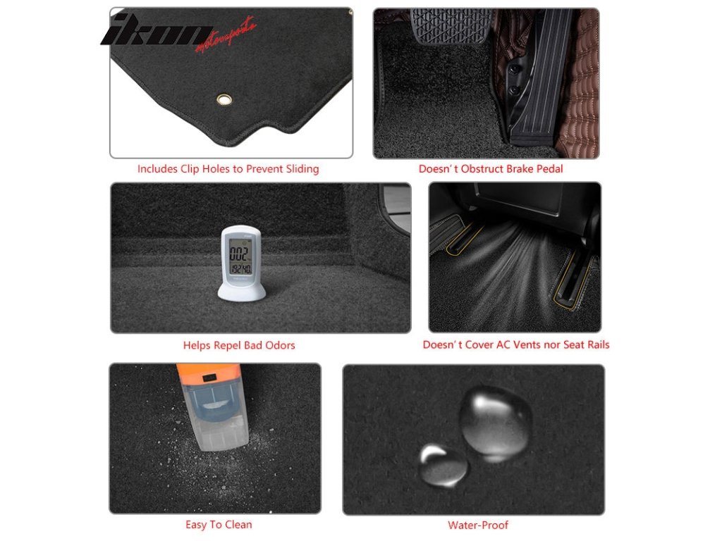 Elegantní černé provedení se hodí k jakémukoli interiéru a dodává vašemu vozu moderní a upravený vzhled. Tyto koberce nejsou jen o ochraně, ale také o tom, aby váš vůz vypadal skvěle.