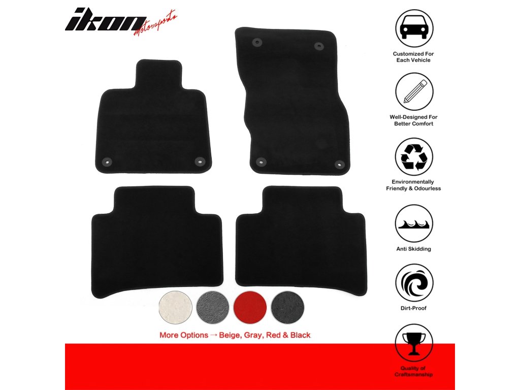 Odolnost a Ochrana: Vyrobeno z vysoce kvalitního nylonu, který odolává opotřebení a zajišťuje dlouhou životnost. Tyto koberečky chrání interiér vašeho vozu před nečistotami, rozlitím a opotřebením, čímž udržují váš vůz v perfektním stavu.