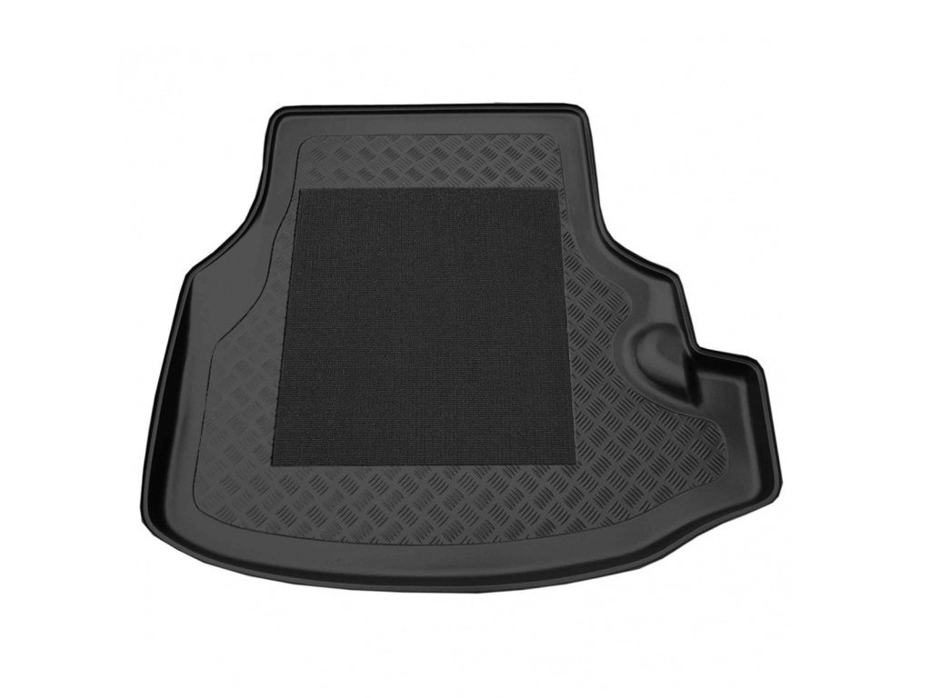 Vasca in plastica con superficie gommata. L'altezza del bordo è di 4-6 cm su tutto il perimetro.Vasca in plastica per il bagagliaio con superficie gommata e bordo alto 4-6 cm. La forma della vasca segue fedelmente il vano bagagli dell'auto Jaguar S Type.