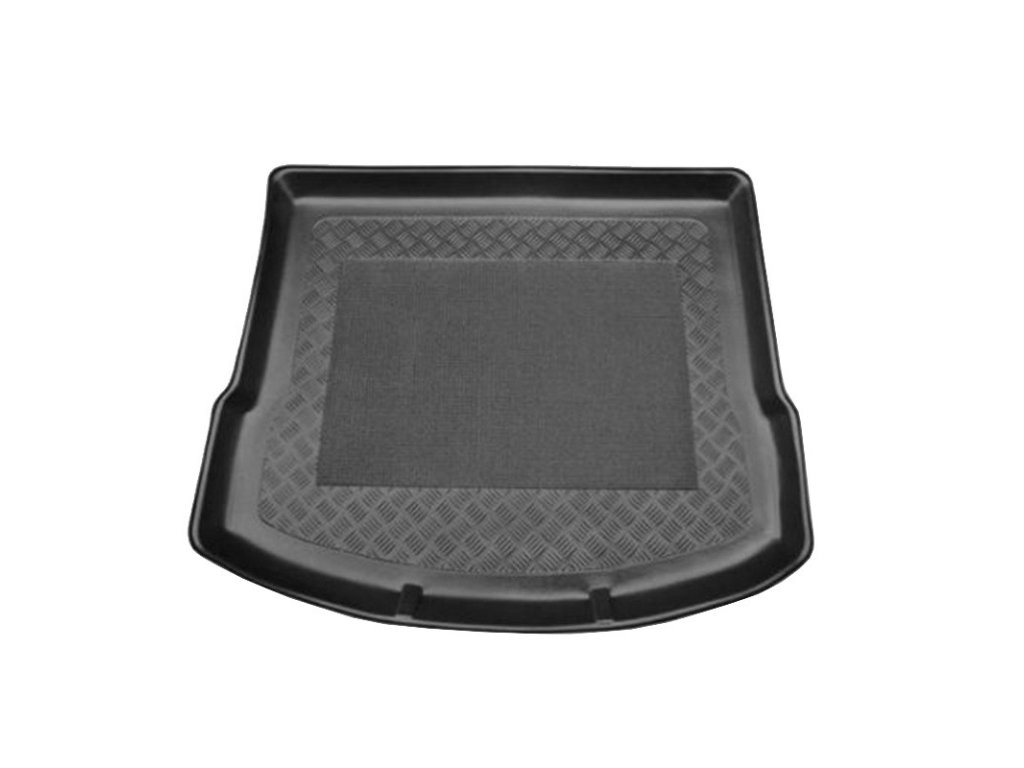 Vasca in plastica con superficie gommata. L'altezza del bordo è di 4-6 cm su tutto il perimetro.Vasca in plastica per il bagagliaio con superficie gommata e bordo alto 4-6 cm. La forma della vasca segue fedelmente il vano bagagli dell'auto Mazda CX-5.