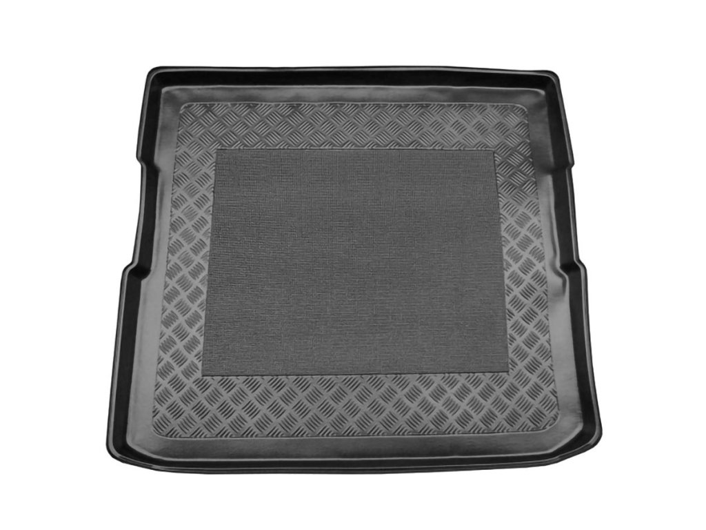 Vasca in plastica con superficie gommata. L'altezza del bordo è di 4-6 cm su tutto il perimetro.Vasca in plastica per il bagagliaio con superficie gommata e bordo alto 4-6 cm. La forma della vasca segue esattamente il vano bagagli dell'auto Mitsubishi Grandis.