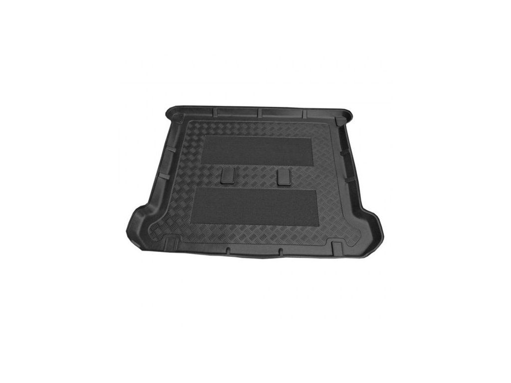 Vasca in plastica con superficie gommata. L'altezza del bordo è di 4-6 cm su tutto il perimetro.Vasca in plastica per il bagagliaio con superficie gommata e bordo alto 4-6 cm. La forma della vasca segue fedelmente il vano bagagli dell'auto Nissan NV200.