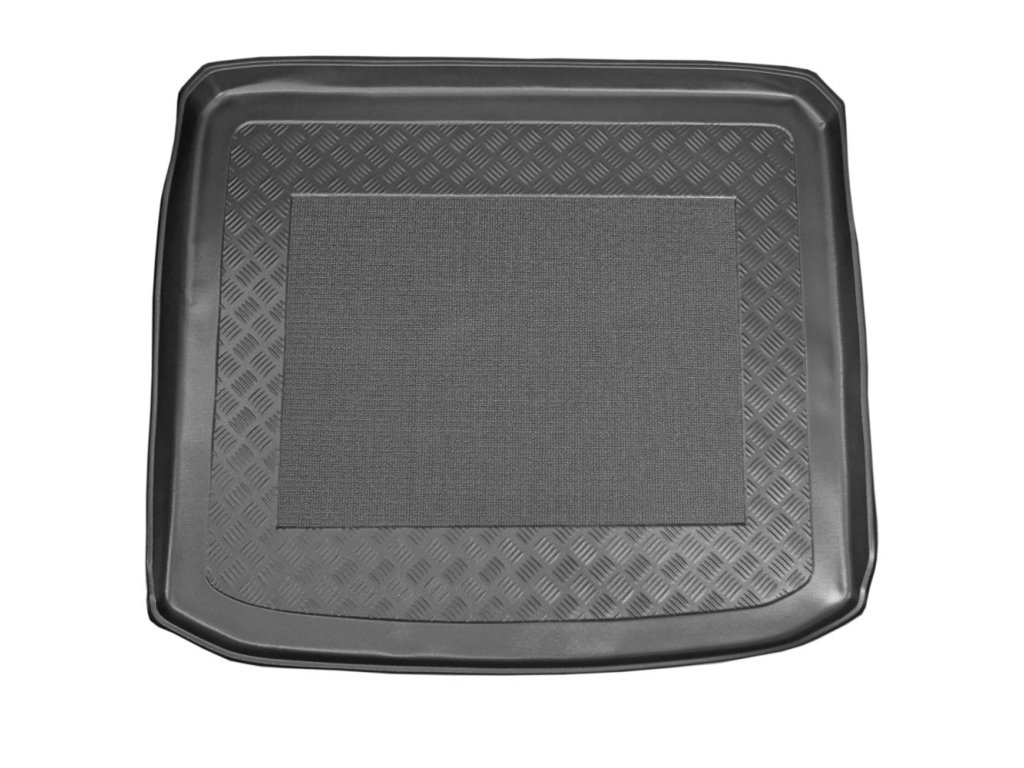 Vasca in plastica con superficie gommata. L'altezza del bordo è di 4-6 cm su tutto il perimetro.Vasca in plastica per il bagagliaio con superficie gommata e bordo alto 4-6 cm. La forma della vasca segue fedelmente il vano bagagli dell'auto Nissan X-Trail.
