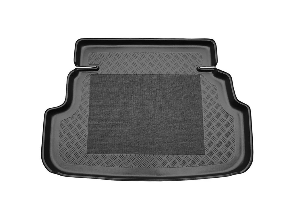 Vasca in plastica con superficie gommata. L'altezza del bordo è di 4-6 cm su tutto il perimetro.Vasca in plastica per il bagagliaio con superficie gommata e bordo alto 4-6 cm. La forma della vasca copia esattamente il vano bagagli dell'auto Toyota Corolla.