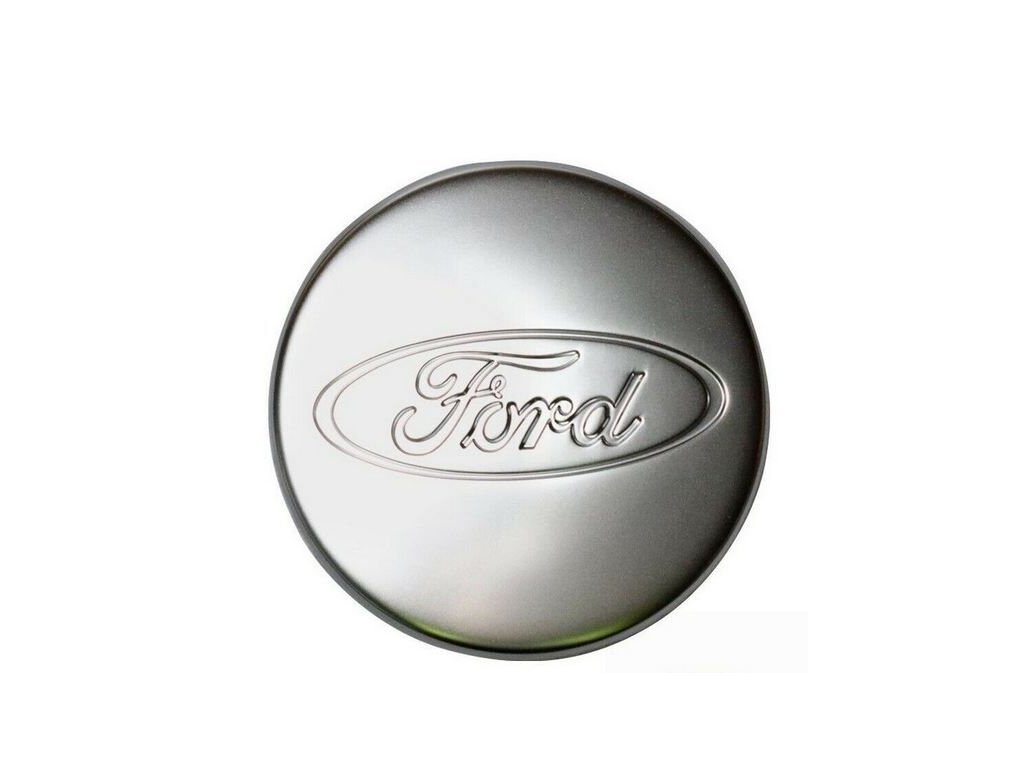 Coprimoto originale in alluminio. Per cerchi in lega da 15 pollici. Cromato - argento opaco con logo "FORD". Diametro esterno del coprimozzo: 68 mm (diametro interno alle linguette: 50 mm).