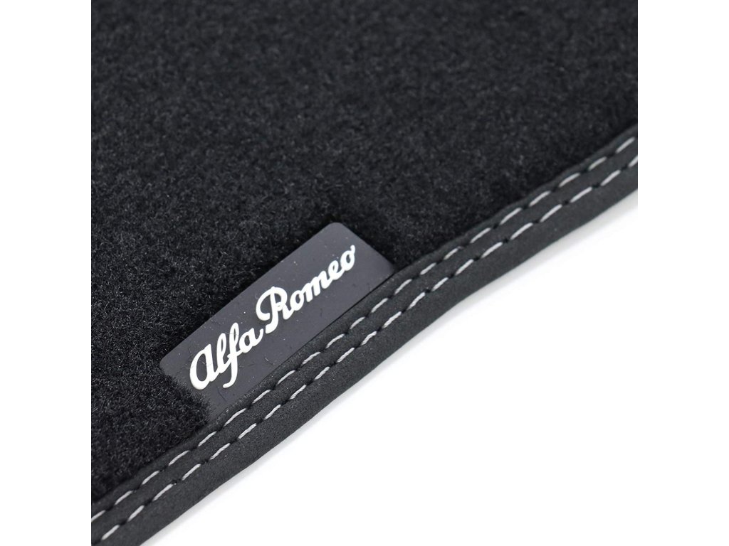 Tappeti in tessuto neri con cuciture argento e logo Giulia, set da 4 pz. Per veicoli 4x2 a trazione posteriore.