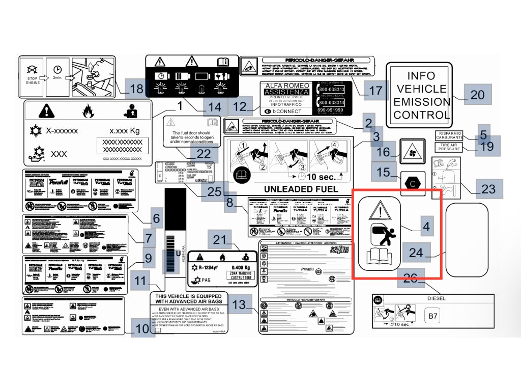 Alfa Romeo Tonale Etichetta - Sicurezza bambini 68202403AA
